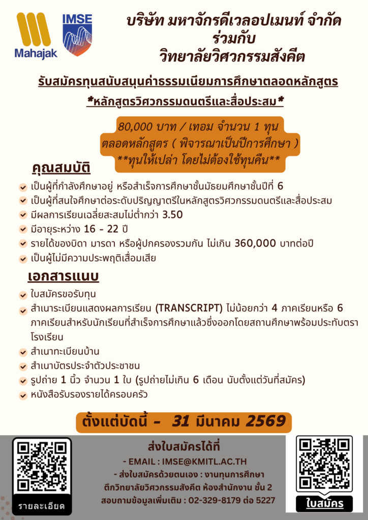 ประกาศรับสมัครทุนการศึกษา บริษัทมหาจักรดีเวลอปเมนท์ จำกัด